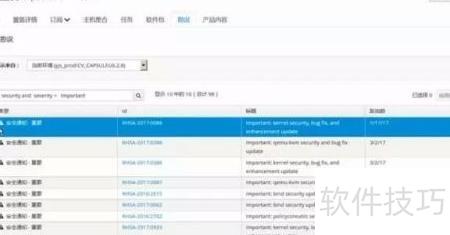 6、 在Satellite中可查看用于数据中心的RHEL版本及红帽最新发布的安全更新动态。