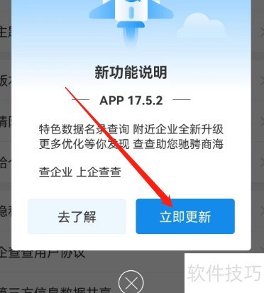6、 进入企查查安卓版新功能页面,点击立即更新完成升级。