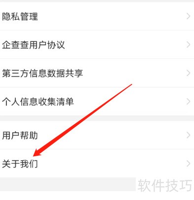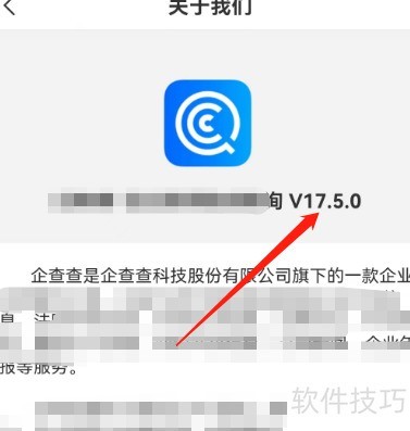 6、 在安卓版企查查的关于我们页面查看版本号。