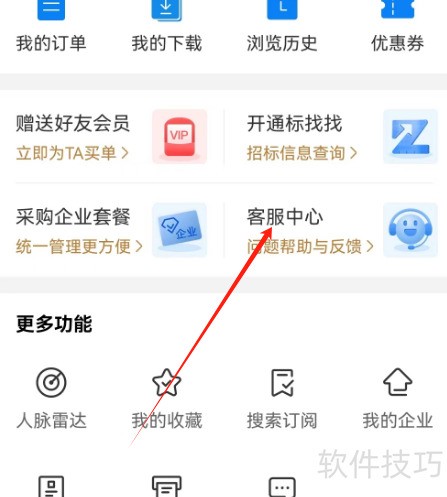 4、 进入安卓企查查个人中心,选择客服中心即可。