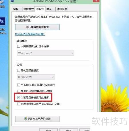 3、 进入Photoshop属性界面,选择兼容性标签页进行设置。