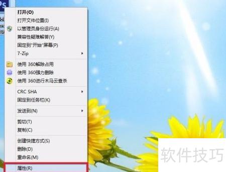 2、 在Photoshop快捷方式上右键点击,选择属性进行设置即可。