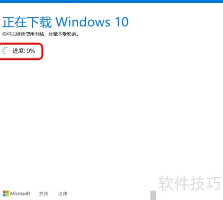 12、 在Windows 10安装程序的正在下载 Windows 10界面中,可观察到相关进度信息。