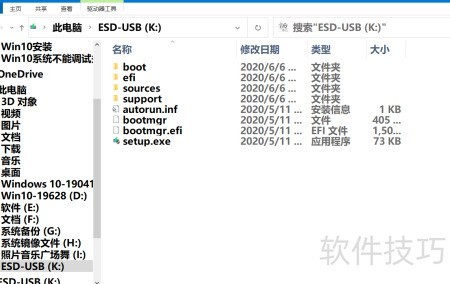17、 在资源管理器中进入ESD-USB(K:),可见Windows 10系统文件已存入U盘,此后可用该U盘进行系统安装。