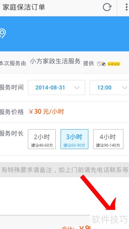 8、 第四步,进入预约页面,选定服务时间与持续时长