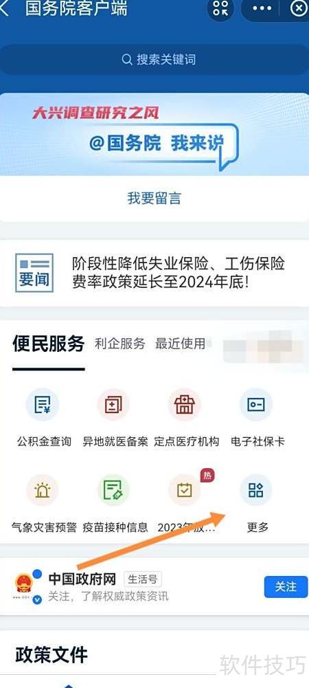 2、 打开国务院小程序,选择查看更多。