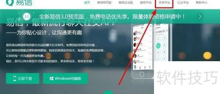 3、 访问易信官网,点击顶部导航栏的开放平台即可进入。