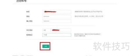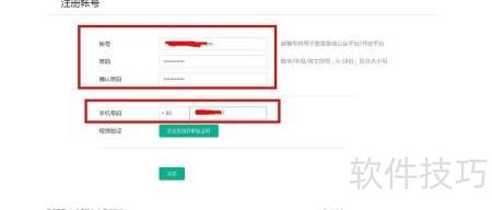 5、 进入注册页面后,填写邮箱、设置密码,并输入手机号完成信息登记。