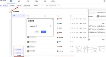 5、 点击账号分组中的或,可对账号进行排序与分类管理,方便高效组织和查找。