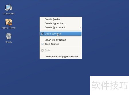 2、 进入系统后,在桌面空白区域右击鼠标打开终端,所示。