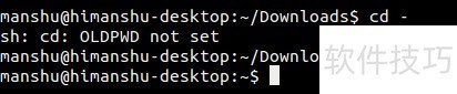 21、 这是由于 OLDPWD 变量尚未被赋值,此时 \$OLDPWD 为空字符串。执行 cd \$OLDPWD 相当于执行不带参数的 cd 命令,两者效果相同,都会将当前工作目录切换至用户的主目录。