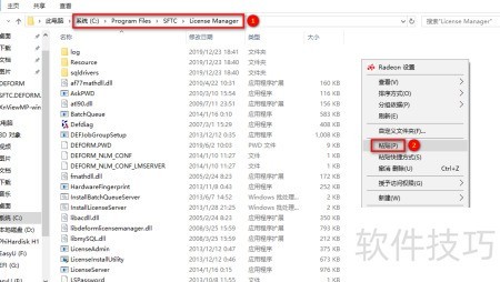 60、 找到LicenseServer文件的安装位置,右键进行粘贴操作,通常默认路径为C:Program FilesSFTCLicense Manager。
