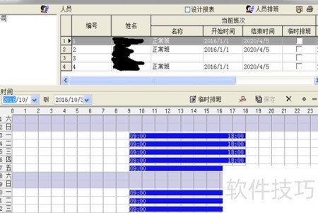 11、 进入人员排班页面后,可进行排班设置,包括新员工。勾选员工前的白色小框,点击右上角人员排班按钮即可完成操作。设置成功后对应区域会显示蓝色或其他颜色边框,若仍为白色,则表示排班未成功。