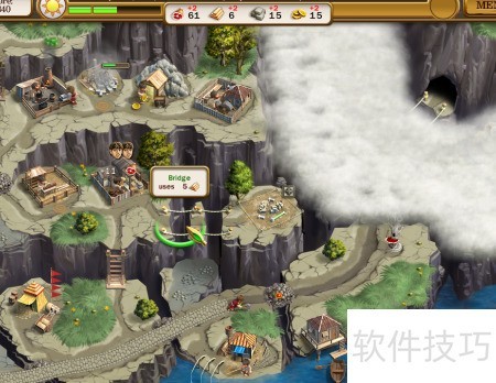 5、 先建中间木桥并清理路面石块,再修复右上方的木桥。