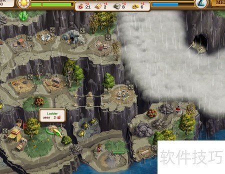 2、 先建中间梯子,再造中央仓库和左侧锯木厂,木材充足后升级仓库。