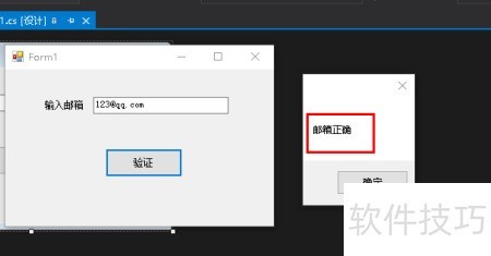 9、 如果邮箱格式正确,将弹出提示框显示邮箱正确。