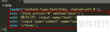 1、 创建名为306.php的文件,操作示。