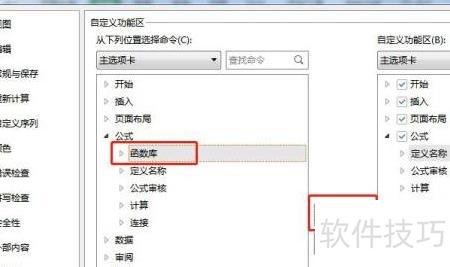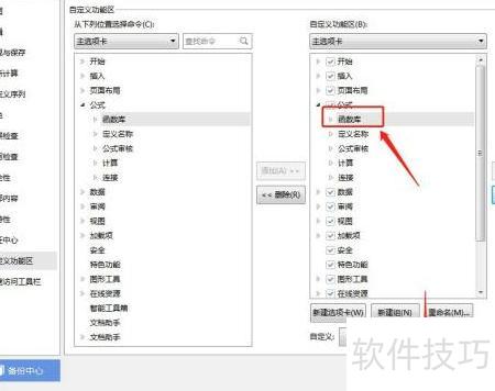 6、 在左侧选择公式中的函数库,再点击添加按钮。