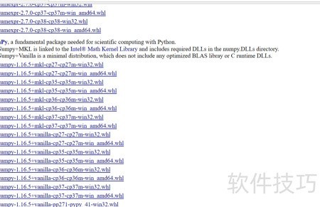 1、 首先访问 https://www.lfd.uci.edu/~gohlke/pythonlibs/numpy 下载 numpy 函数库,确保选择与系统和 Python 版本匹配的安装包,下载完成后进行安装即可使用。