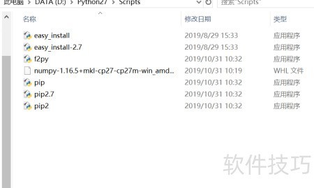 3、 把下载的numpy文件复制到Python27目录下的Scripts文件夹中即可。