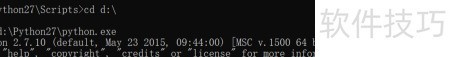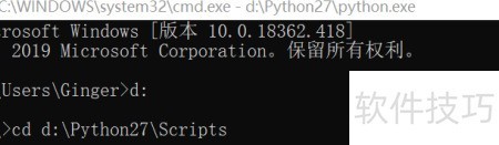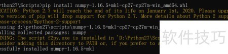 8、 成功安装numpy库后,切换至Python27的安装目录。