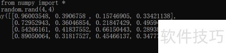10、 输入 from numpy import *,然后运行 random.rand(4,4) 来检查 numpy 是否安装成功。如果输出结果中所示的 4×4 随机数组,则表明安装已成功。