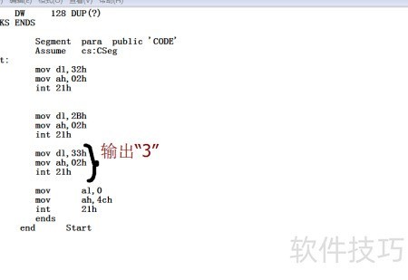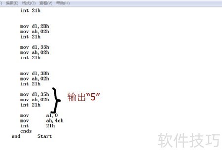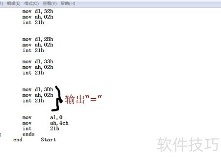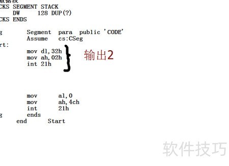 4、 此处调用2号功能,需将待输出字符送入dl寄存器。