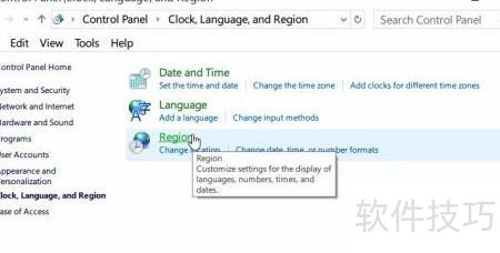 1、 进入控制面板,选择时钟、语言和区域进行设置。