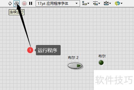 4、 在程序面板连接两个布尔控件后,点击运行按钮执行程序。