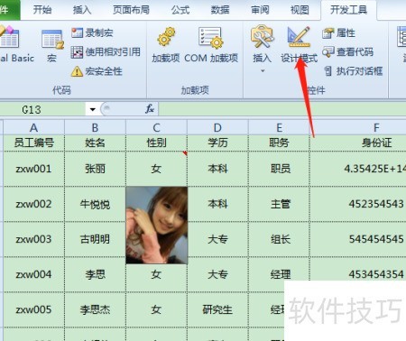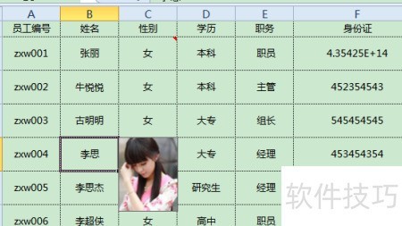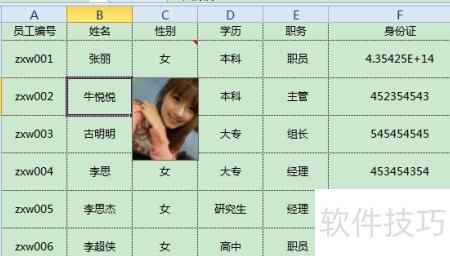 1、 所示,点击姓名即可查看对应人员的照片,让表格更加直观生动。