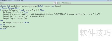 7、 将指定路径下的员工照片文件加载到图片控件中,文件名为单元格前一列内容对应的jpg图像,确保图片显示与选定员工信息匹配,路径由当前工作簿位置和员工编号共同构成。