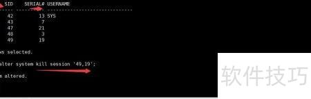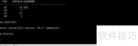 2、 根据查到的sid和serial,可直接终止对应用户进程,具体操作所示。