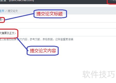 3、 在论查查平台点击开始查重,输入论文标题与正文内容,注意按要求去除表格、图片等非文字元素,确保格式符合系统规定。