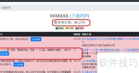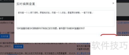5、 四、每修改完一句话立即提交,论查查系统将实时检测并更新该句修改效果、查重率及全文整体重复率,持续调整直至论文整体相似度达到所在院校规定的标准为止。