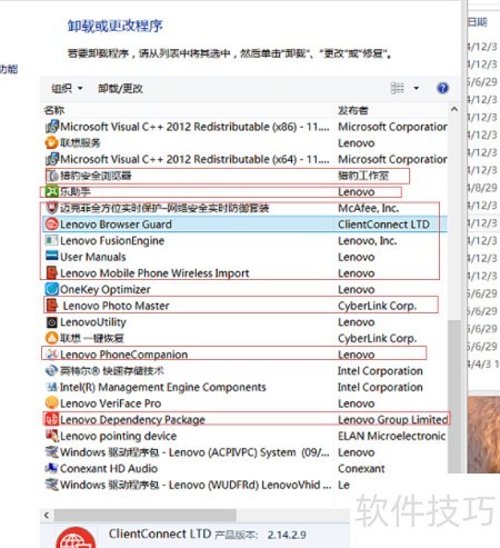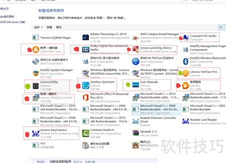 9、 红色标记为不可卸载项,绿色标记为可卸载项。