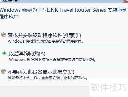 13、 将TL-TR861设备插入运行Windows Vista系统的电脑后,系统会自动启动硬件安装向导提示用户进行配置。