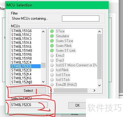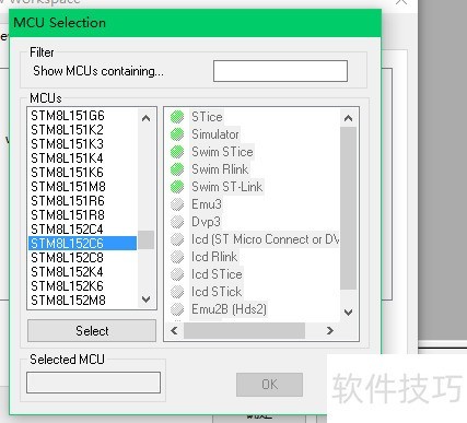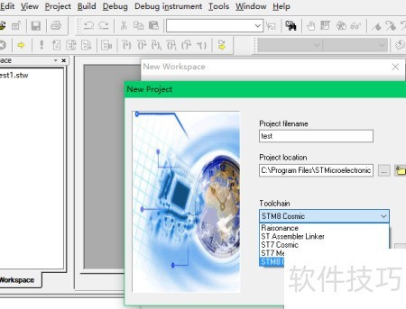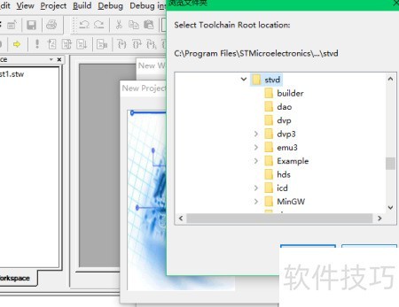 4、 在界面中找到并选择工具链为STM8 Cosmic,点击确定。随后弹出新窗口,进入其中的Cosmic文件夹并选中即可完成设置。