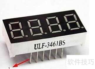 5、 将数码管正面朝向,左下角为第1脚,逆时针依次编号至第12脚,共12个引脚。