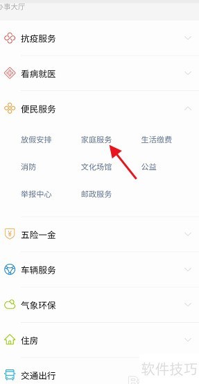 3、 进入城市服务,选择便民服务,点击家庭服务即可。