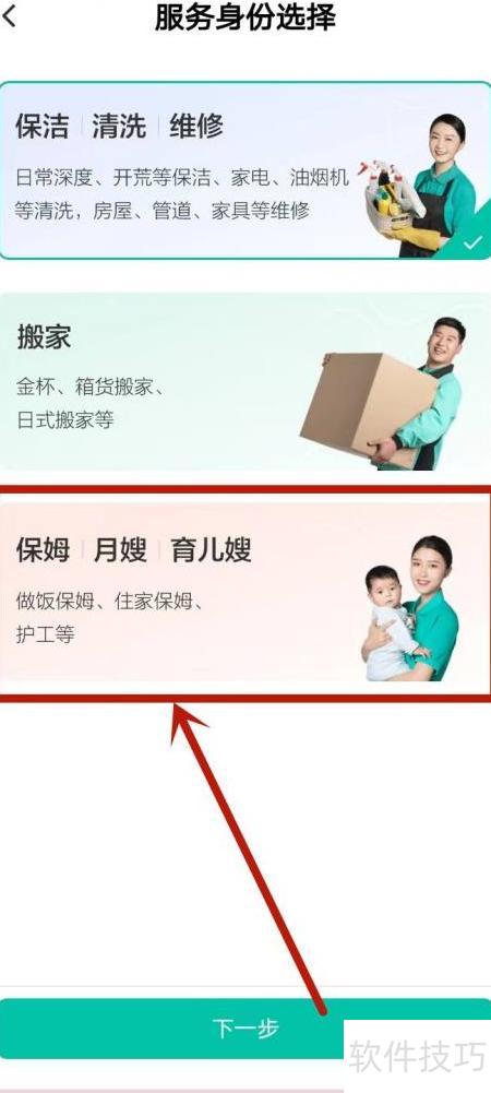1、 打开58到家工作端,进入家政保姆类别进行选择。