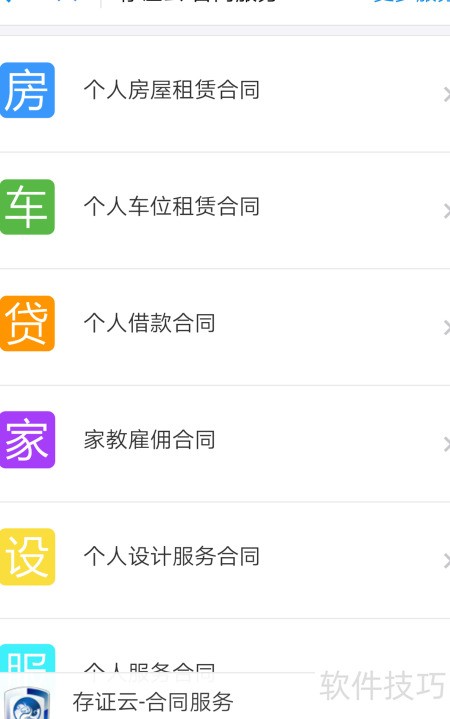 5、 点击知道了后,跳转至云证存-合同服务页面,系统将常见合同分类展示,用户可按实际需求自行选择所需合同类型。