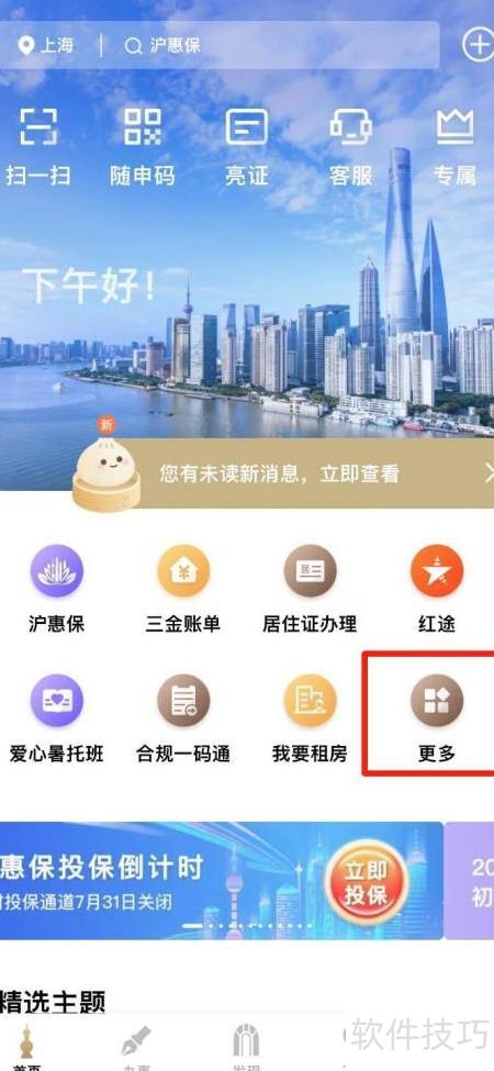 1、 打开随申办应用,点击更多选项。