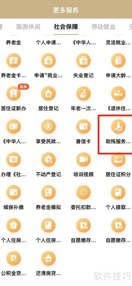 2、 进入更多服务后,选择并点击助残服务选项。