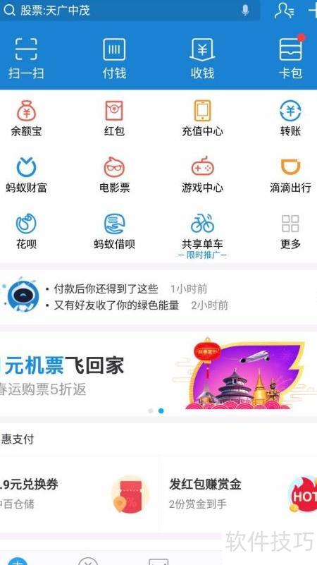 1、 打开支付宝首页,点击更多选项。