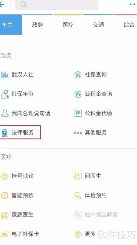 3、 在城市服务的政务板块中查找法律服务选项。