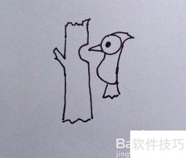 8、 绘制啄木鸟的翅膀与脚部,参照图示。