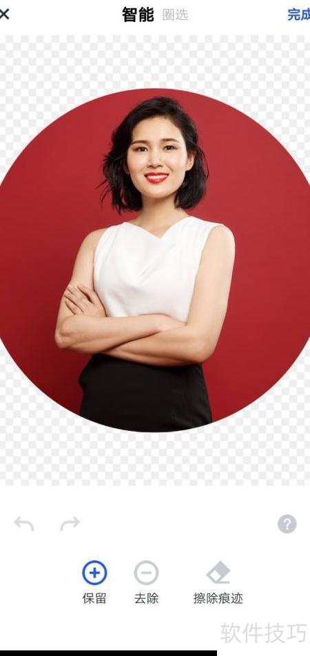 4、 将一张红色背景的照片置入圆形框内,人物着装建议选择白色系服饰。