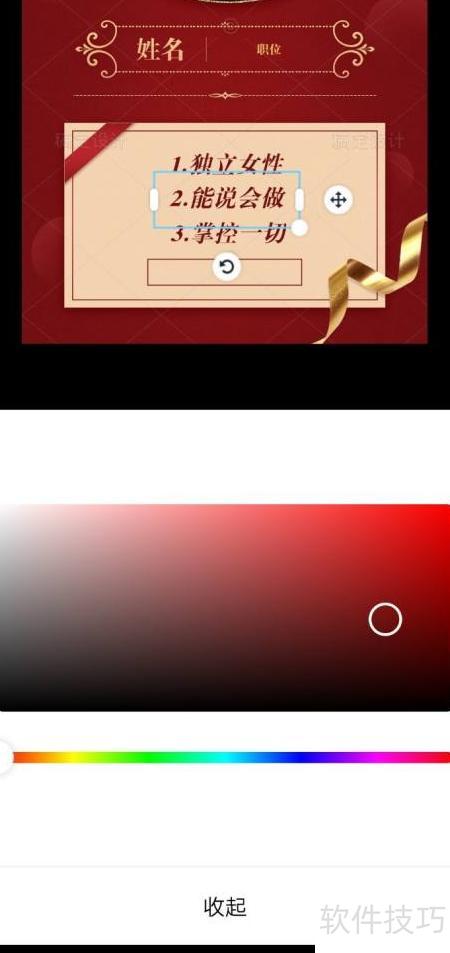 职场女性同样能够取得卓越成就。本次将设计一张女经理的手机名片,通过实践掌握红、白、金配色方案的运用,学习如何巧妙结合线条、文字、装饰边框与照片进行整体排版布局。
