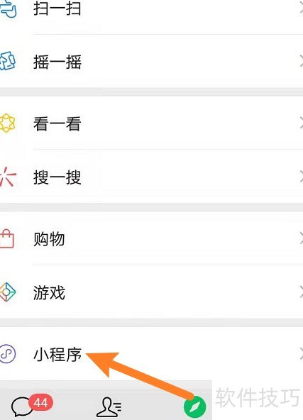 2、 进入主页面后,点击底部发现,选择其中的小程序,找到并进入本地宝。