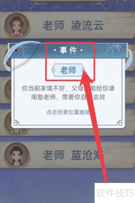 1、 接着进行第二步,触发老师相关事件。